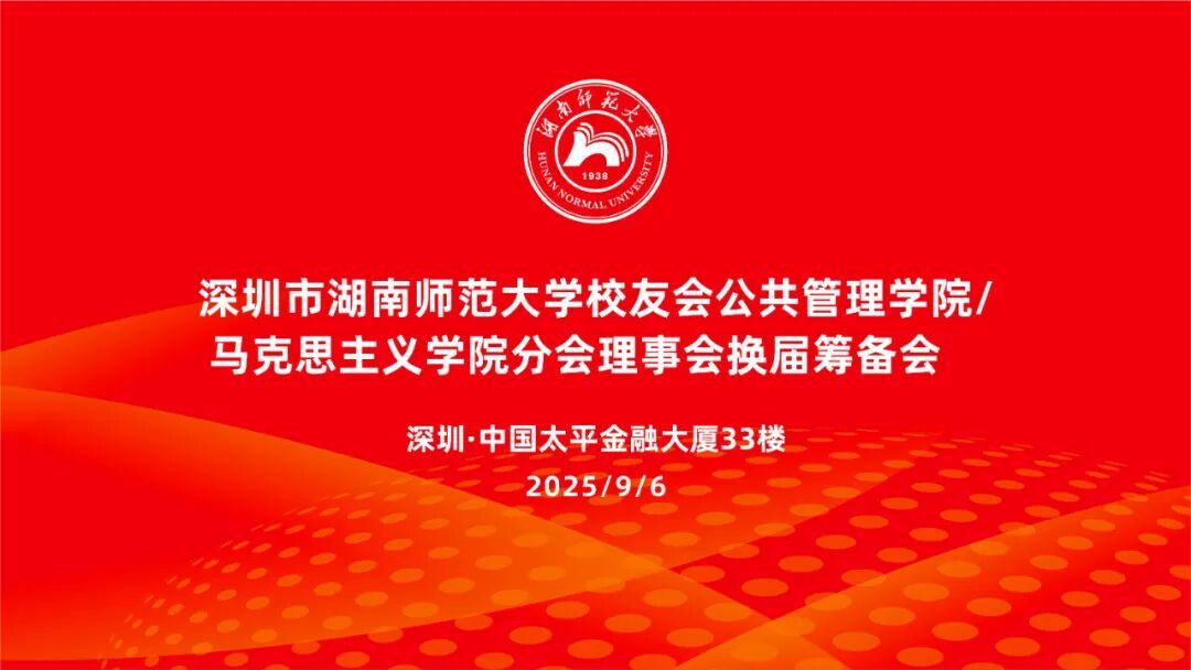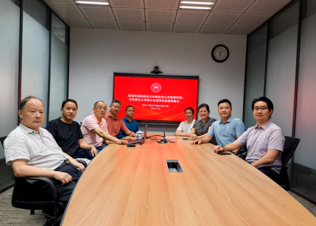 2025年9月6日,深圳市湖南师范大学校友会公共管理学院/yl9193永利分会理事会换届筹备会议于深圳中国太平金融大厦33楼顺利召开。公共管理学院校友工作专员邝洁、yl9193永利党委副书记易珊、师大深圳校友会执行会长兼秘书长邹寿长、学院校友分会名誉会长孙兴林,以及刘行松、鲁礼辉、刘松青、储轶、李金华、唐敏、贺宇、宁小军校友参加了本次会议。